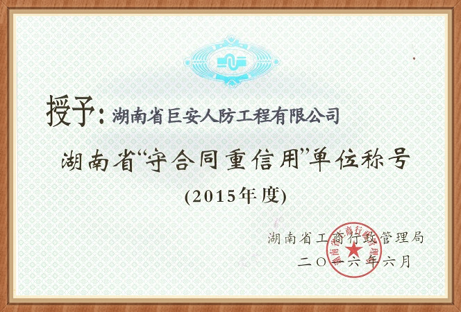 熱烈祝賀我司在湖南省工商行政管理局2015年《守合同重信用》企業(yè)評比中,再次榮獲湖南省《守合同重信用》單位稱號。